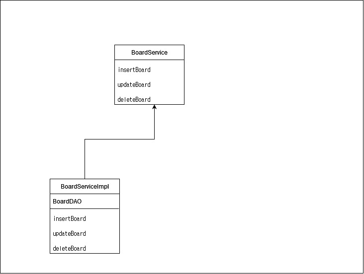 그러니까 우리는 BoardService를 구현한 JDBCBoardServiceDAO를 따로 두는것이 가장 이상적이다.