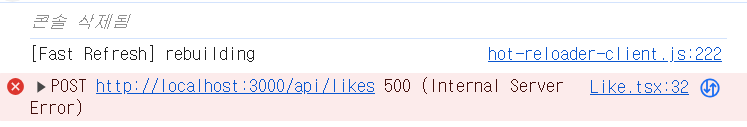 브라우저의 콘솔에서는 위와 같은 메시지만 반복해서 나왔고 vscode의 터미널에서도 아래의 메시지만 계속해서 출력됐다.
