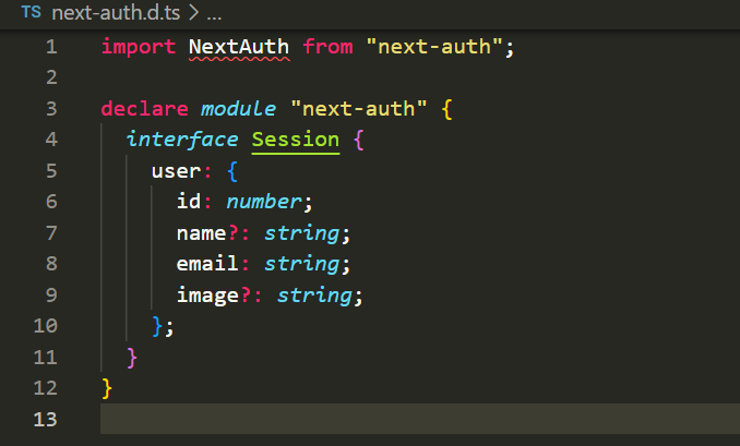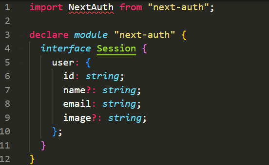 원래 코드는 기존 name, email, image만 가지고 있는 session 의 타입에 id를 추가해주었다.