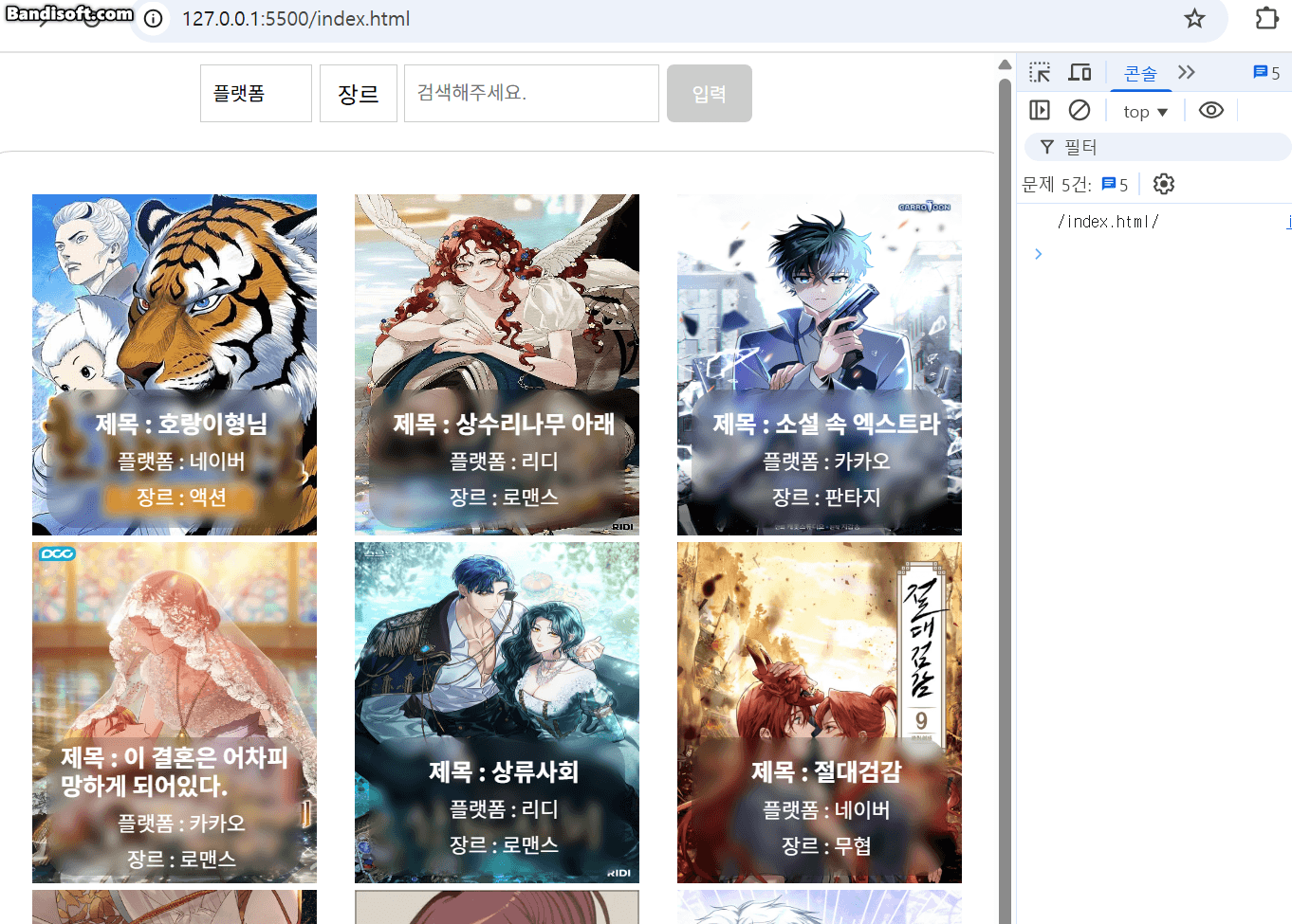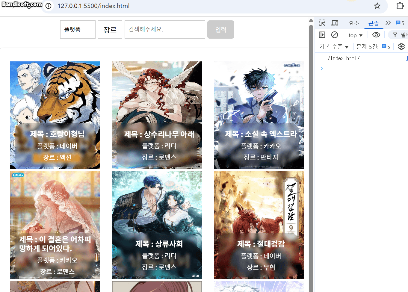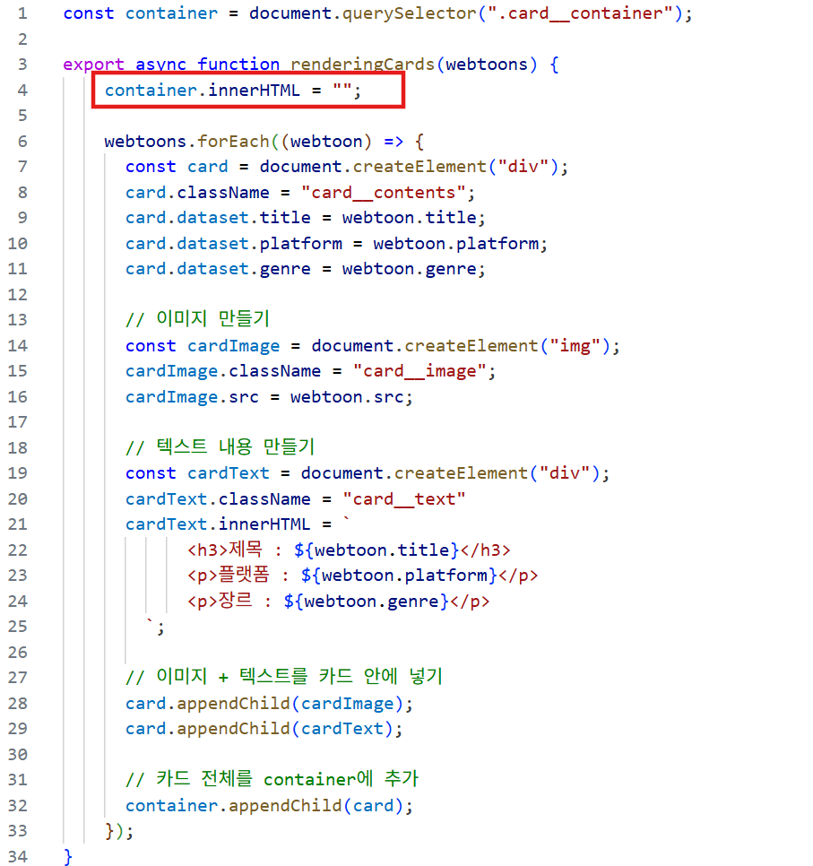 그리고 항상 로드할 때에는 검색 목록 컨테이너를 비워서 새롭게 써야한다.