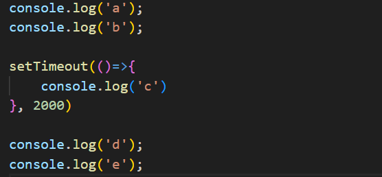 위의 코드는 동기적으로 실행한다고 생각했을 때 a, b, c, d, e를 순서대로 출력한다고 생각할 수 있다.