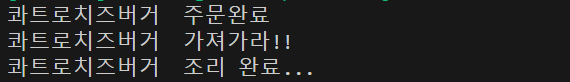 위의 코드는 햄버거를 주문하고 받아서 먹는 일련의 과정을 코드화 했다.