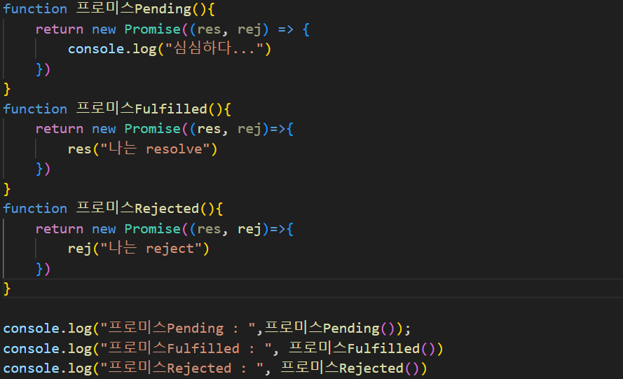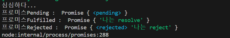 왜인지 Fulfilled 상태는 출력되지 않았지만 pending과 rejected가 출력되어서 다행이었다.