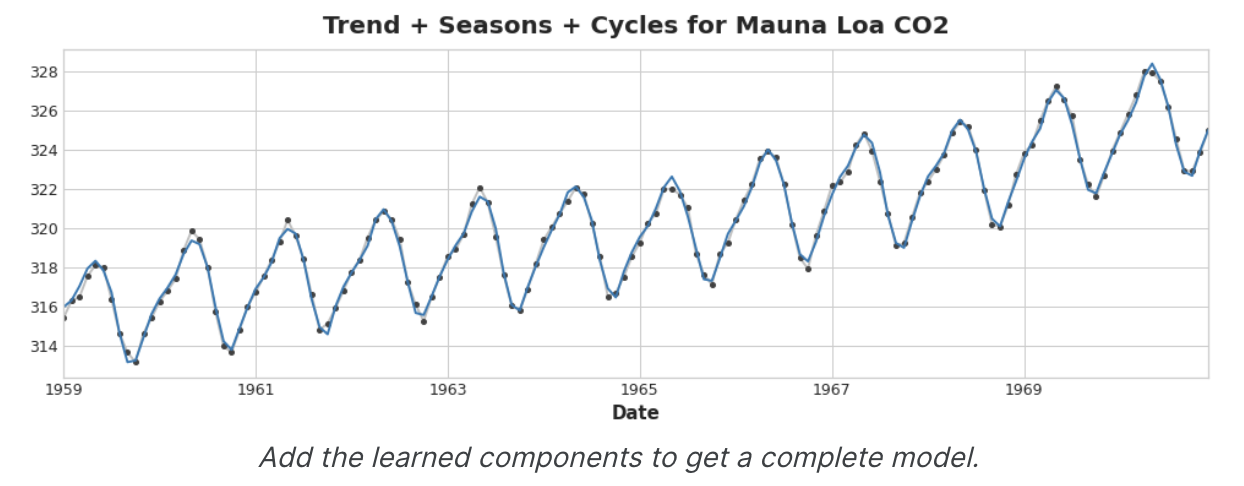 선형 회귀는 추세를 추정하는 데는 탁월하지만 상호 작용을 학습할 수는 없다. XGBoost는 상호작용을 학습하는 데는 탁월하지만 추세를 추정할 수는 없다.