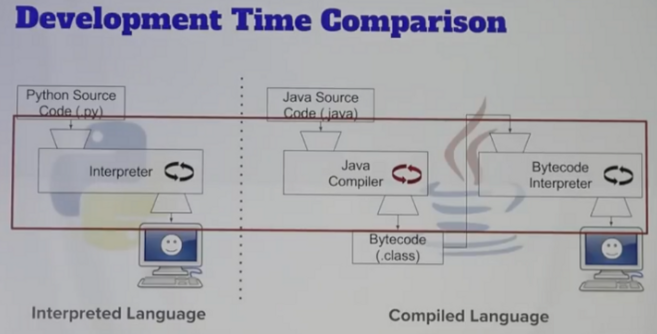 2. 인터프리터 방식 : 소스코드를 빌드시에 암것도 하지 않다가, 런타임시에 한줄 한줄 읽어가며 변환