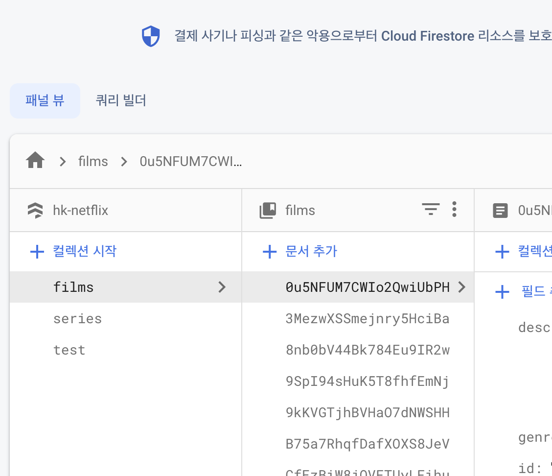 test는 실험해본 것이고 위 코드를 넣고 yarn start를 하면 films 와 series 가 생성이 될 것이다.