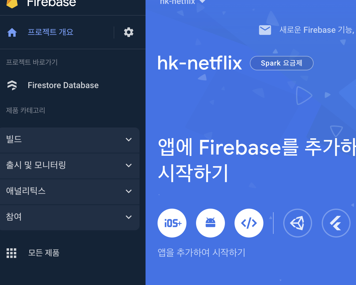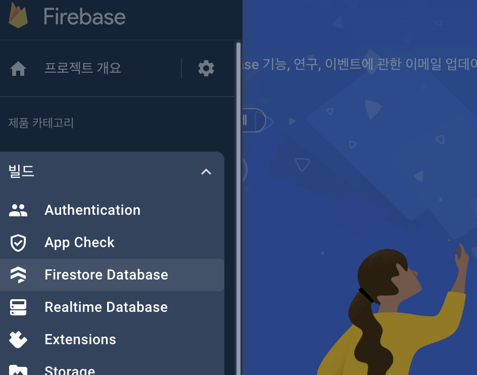 Firestore Database에 들어간후 데이터베이스 생성버튼을 누른다.