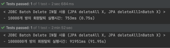 • JPA deleteAlldeleteAllInBatchJDBC Batch DeleteBatch Delete (IN절)