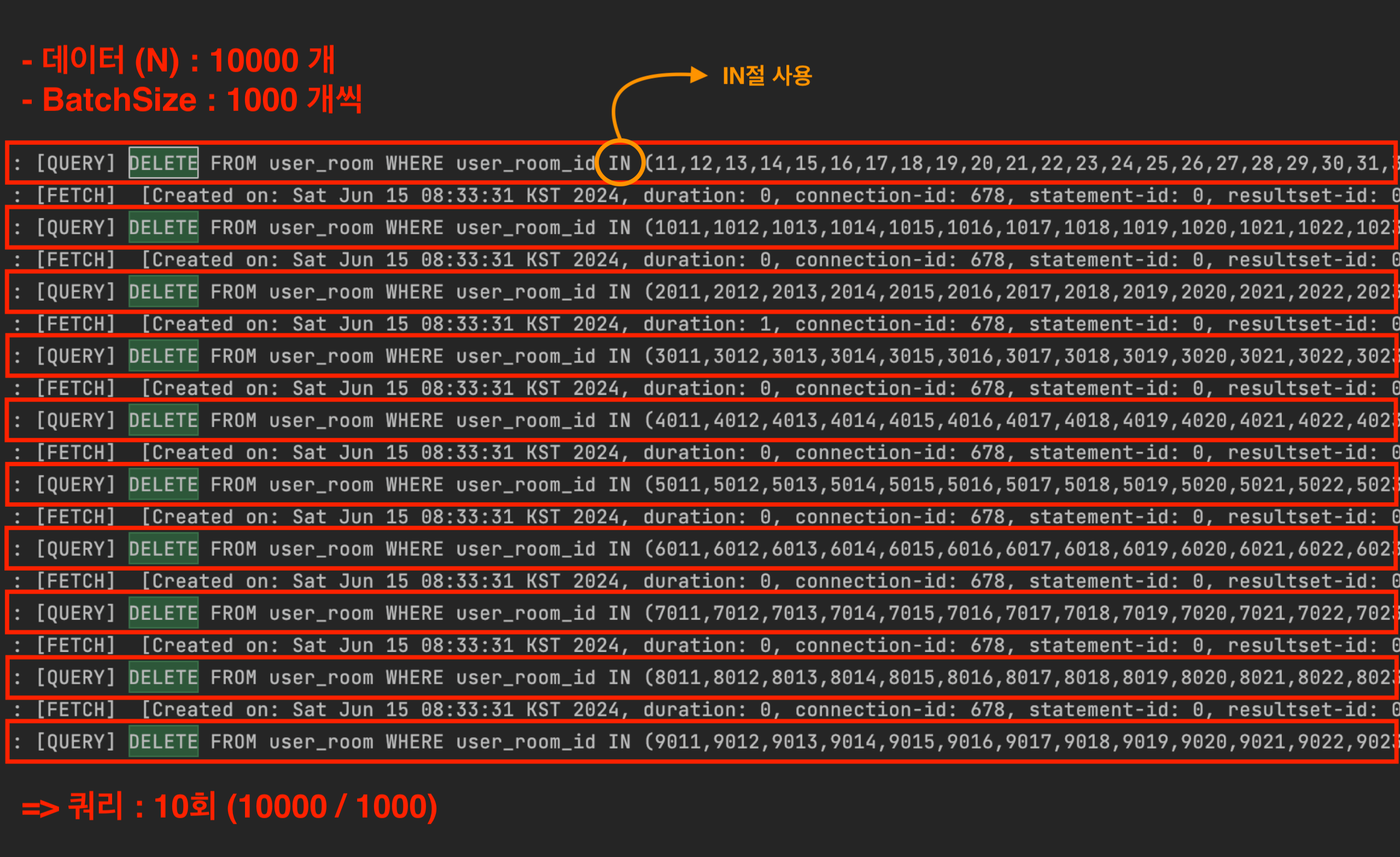 // [ 방법 4. JDBC Batch Delete (IN절) ] - 해결 후