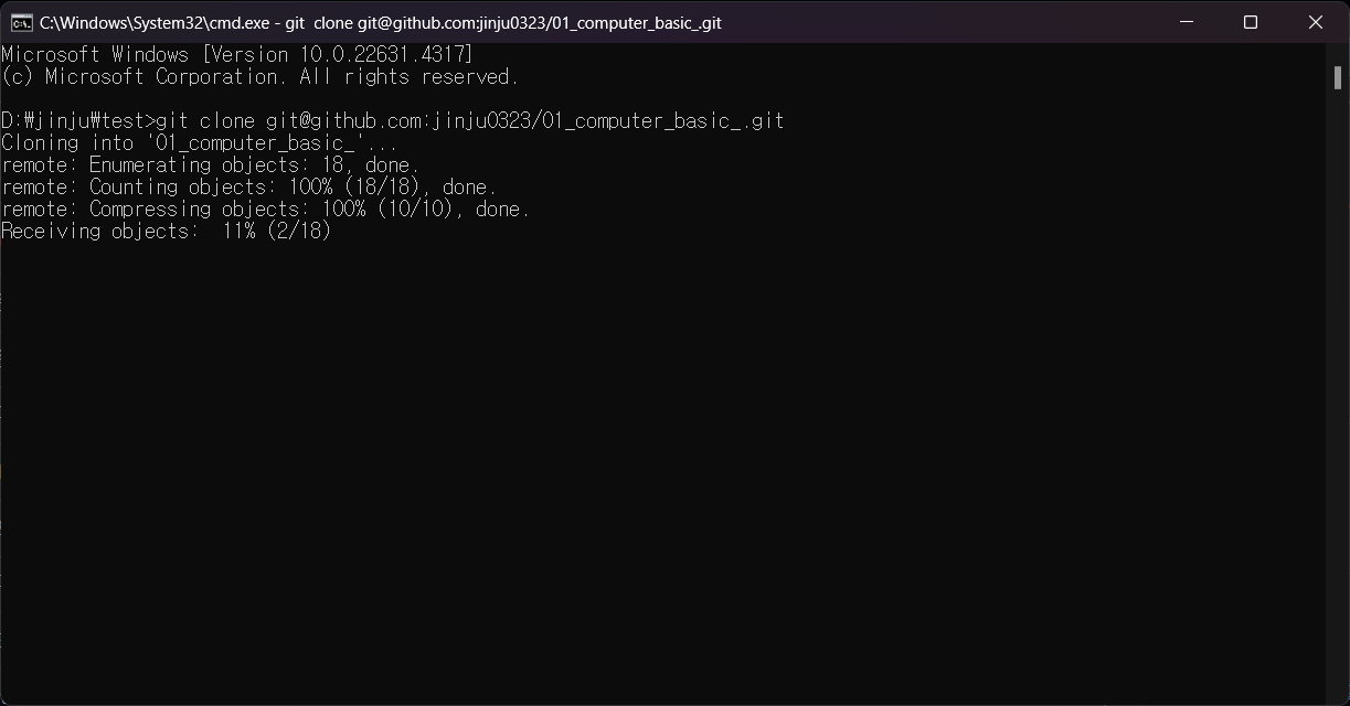 추후에 ssh 주소로 commit, push, clone, pull이 가능한지 확인해봐야겠다.