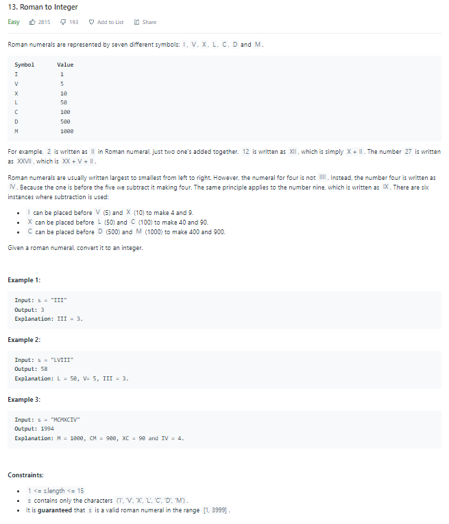 (다만, 문제에서 주어진 IV, IX, XL, XC, CD, CM 같은 경우를 반드시 확인)