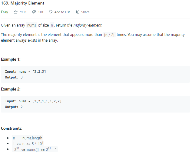 def majorityElement(self, nums: List[int]) -> int: