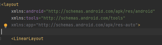 최상단에 layout 태그를 생성해주고 기존의 레이아웃을 모두 안으로 집어넣는다. 그리고 기존의 레이아웃에 있던 xmlns를 모두 layout 태그로 옮겨줘야한다.