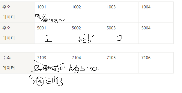 (이때 @5002번은 더 이상 사용되지 않아 가비지컬렉터의 수거 대상이 됨)