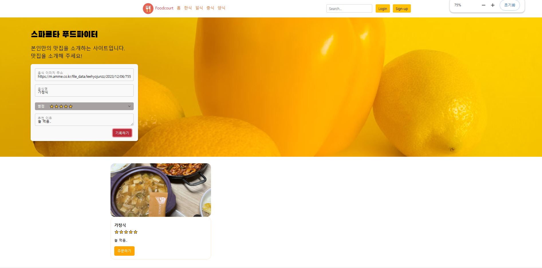 이미지와 음식명 별점등을 넣고 기록을 하면