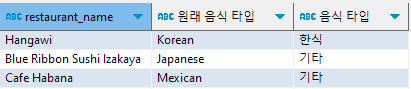 if(cuisine_type='Korean', '한식', '기타') "음식 타입"