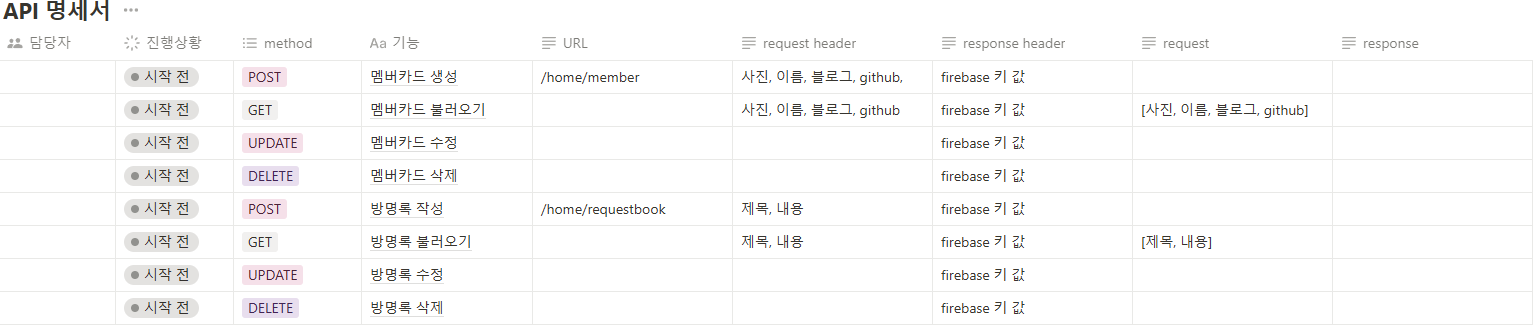 명세서 같은 경우 UPDATE와 DELETE에 request header를 설정하여 수정, 삭제에 용이하게 만들어야 하는데 이 점에 대해서 아직 고민 중이다.