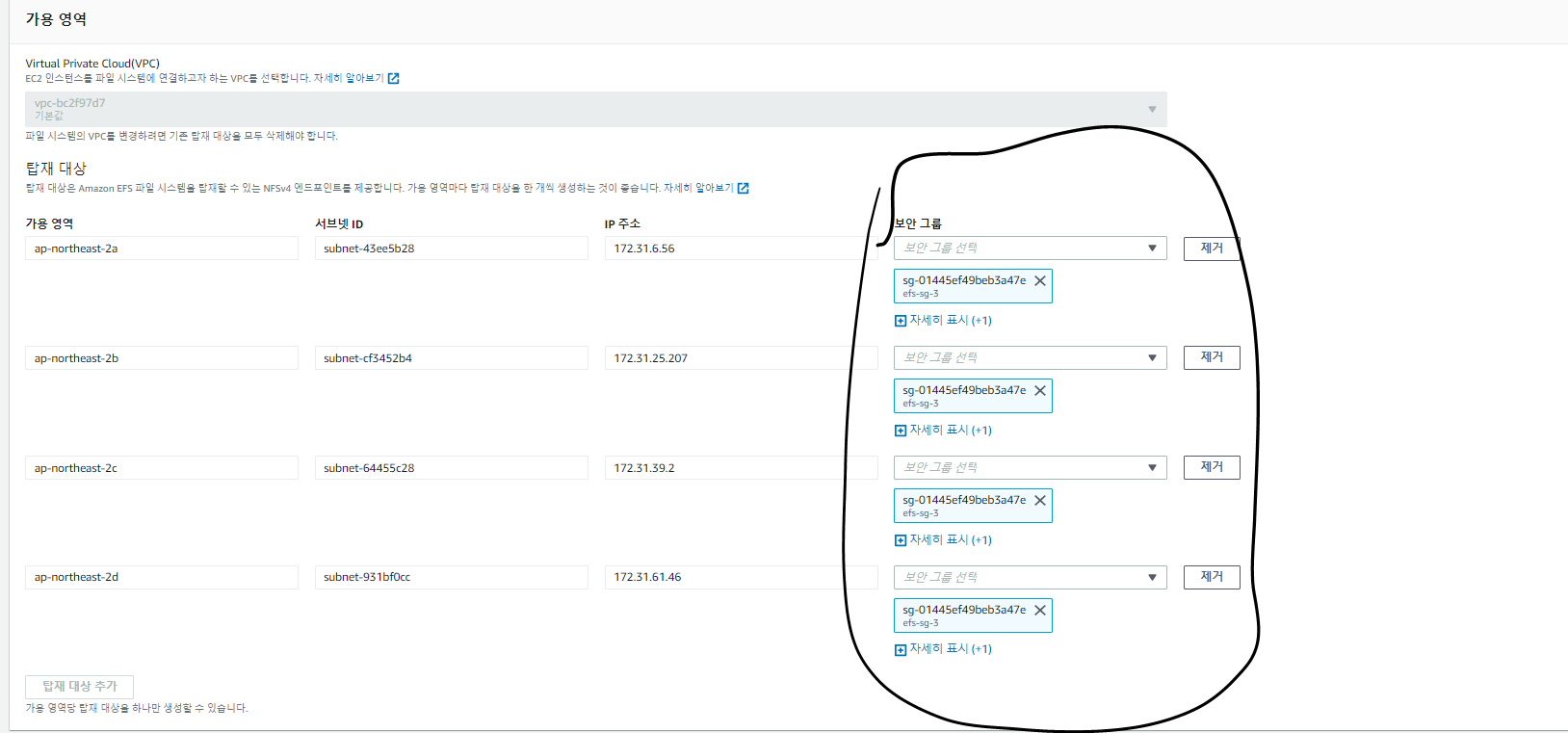 • 파일 시스템과 VPC는 동일한 AWS 리전에 위치해 있어야 합니다.