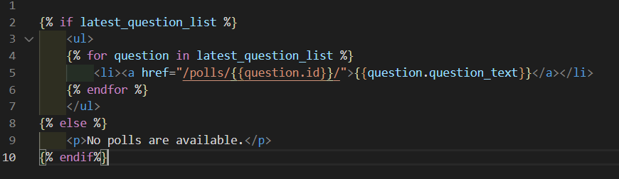 그리고 생성한 polls 폴더에 index.html 파일을 생성 후 작성한다.