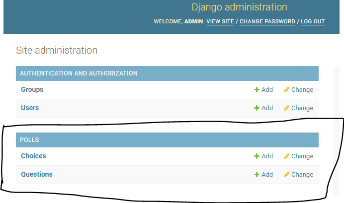 Admin 사이트에 Users, Groups 테이블만 보였는데, models.py 파일에서 정의한 테이블도 Admin 사이트에 보이도