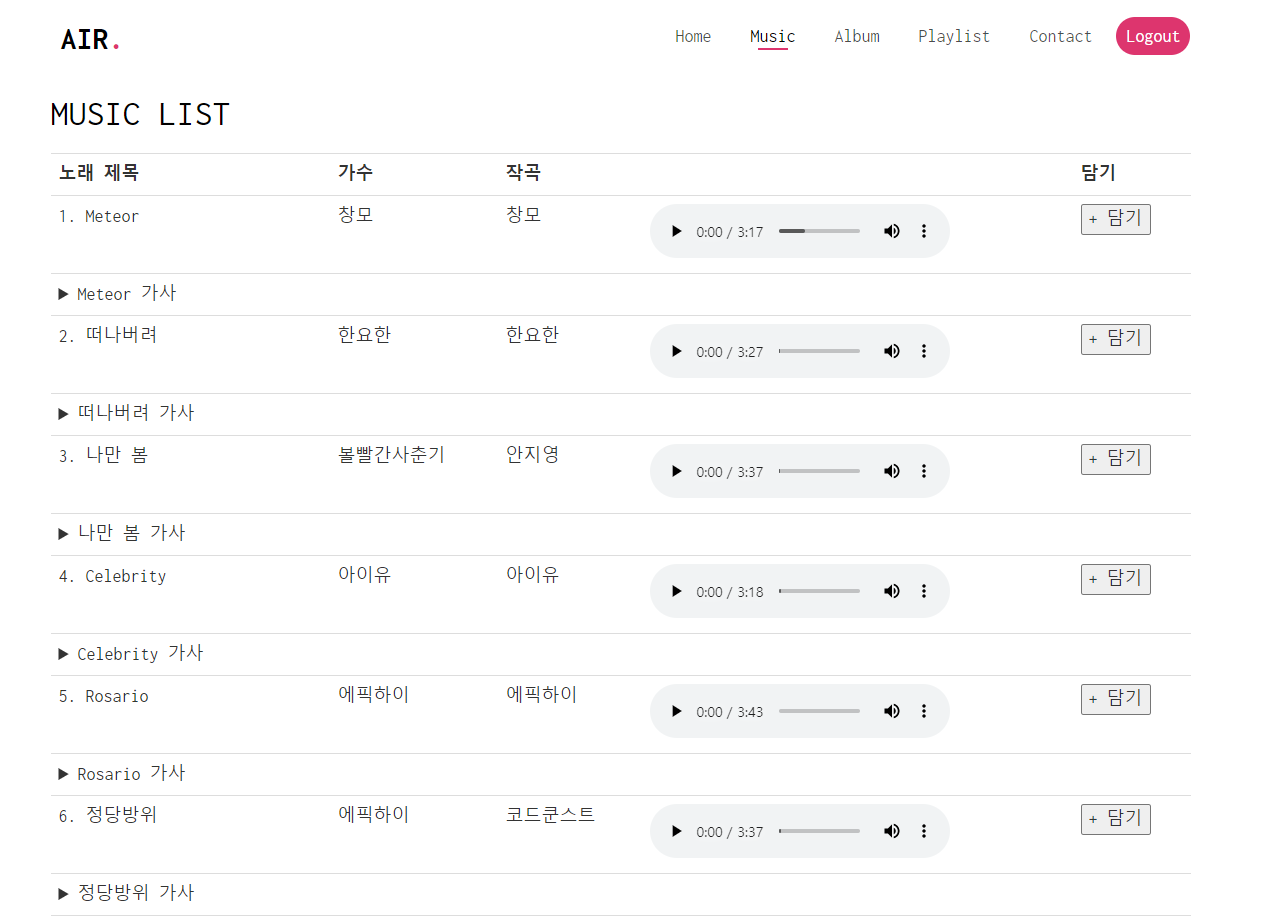 앨범 페이지 (앨범 1개만 넣어놓은 상태)