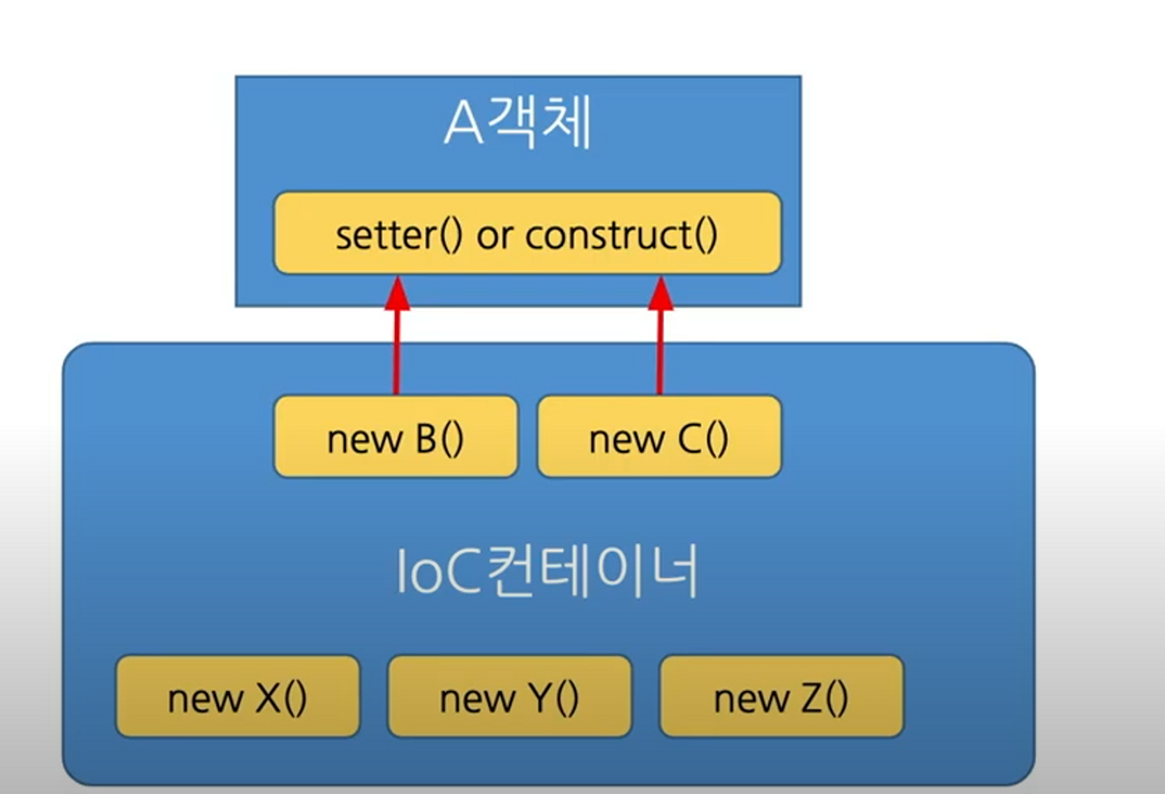 A는 B,C 의 기능에 의존한다고 한다, A에게 B,C 의 기능을 주입 시켜준다고도 한다