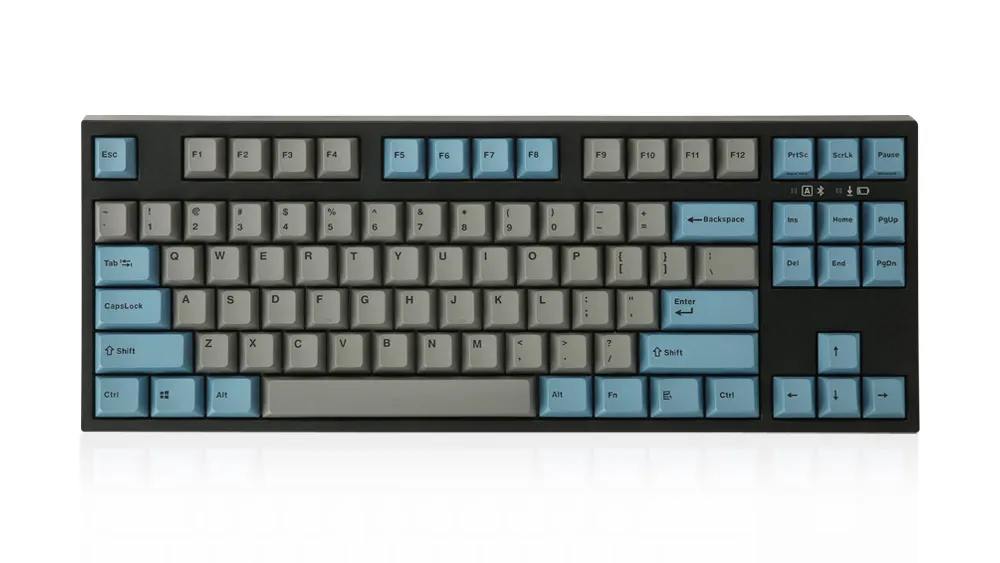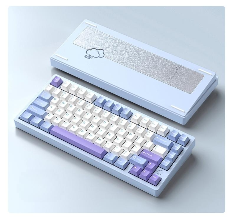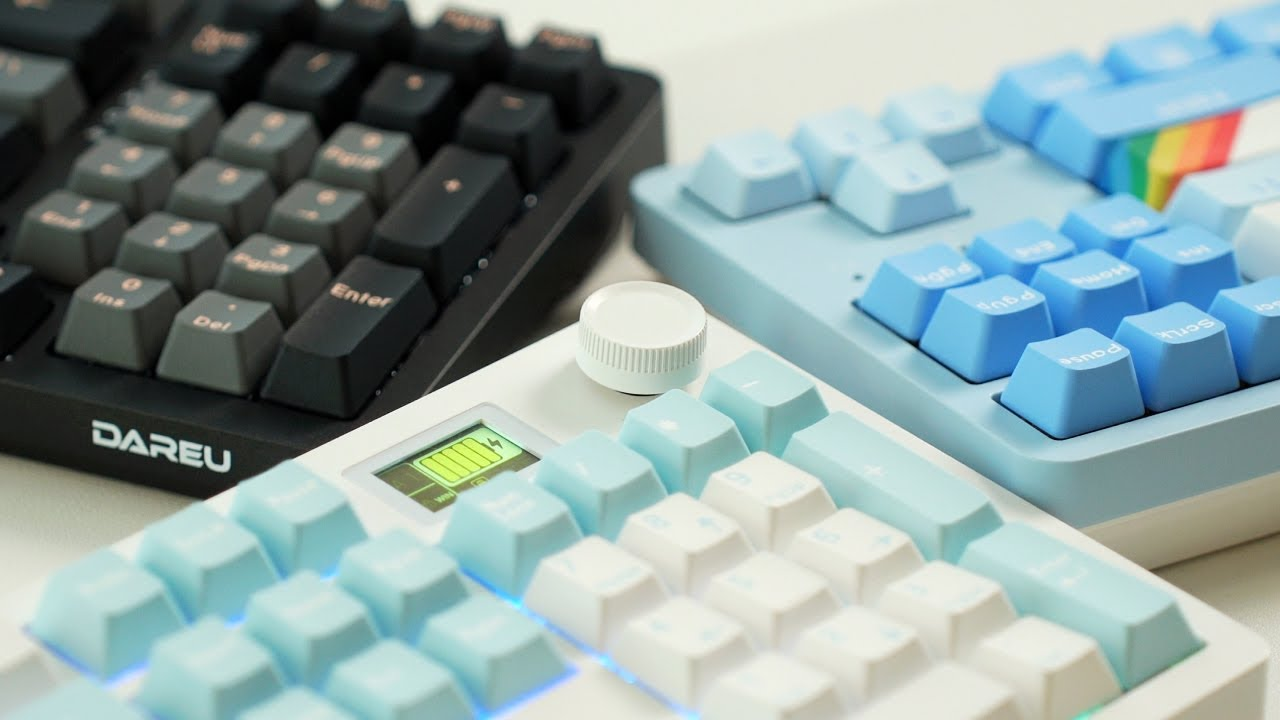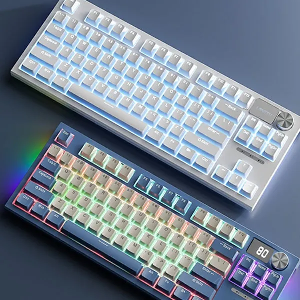 이 친구가 일단 히트를 쳤습니다. 보면 비쥬얼도 깔쌈하고, 저 파란색 키캡(저걸 포인트 키캡이라 합니다)을 되게 많이 넣어줘서 f1부터 f12까지 다 파란색으로 커스텀 해줄 수 있었습니다. 불륨 조절 노브도 있고, 키캡 품질 자체도 괜찮고, 마감도 꽤 좋았습니다. 무엇보다 탑재된 스위치가 akko cs piano라는 스위치있는데, 지금은 너무 좋은 스위치가 많아서 잊혀졌지만, 당시에는 너무 인기가 많아서 따로 사는 사람도 많았을 정도로 1티어급 스위치였습니다.