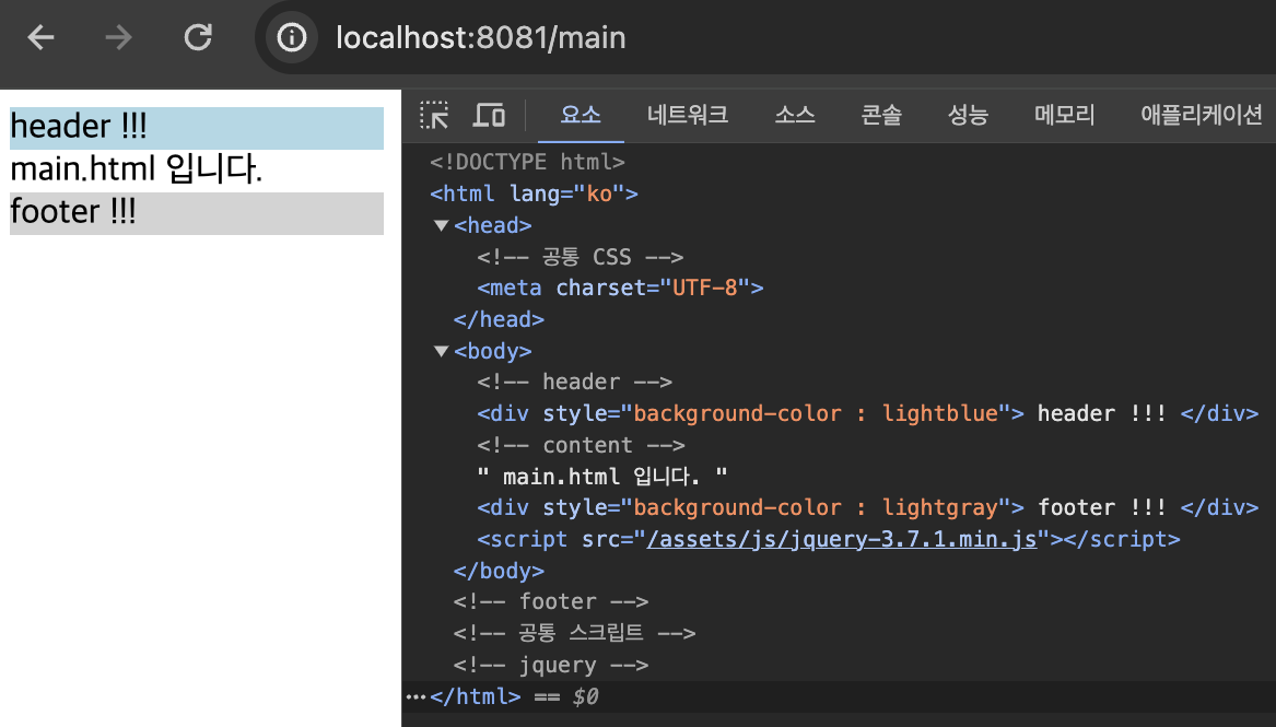 그리고 다른 페이지에 타임리프를 사용해서 위의 푸터를 추가해보자