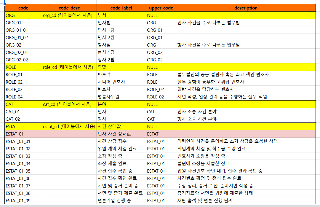 는 ORG_01_01 (민사 1팀) 형식으로 저장된다.status_code