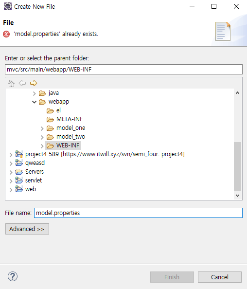 ※ xyz.itwill.mvc 패키지에 ErrorModel.java 클래스 생성