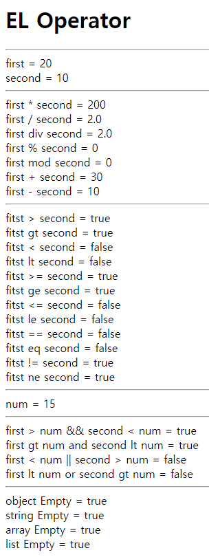 <%-- EL 연산자 : EL 표현식에서 사용하는 연산자 - 산술연산자, 관계연산자, 논리연산자 등 --%>