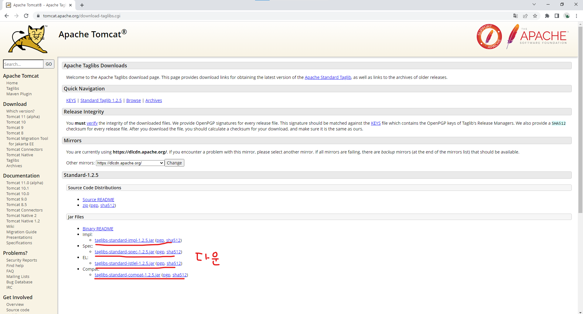 <%@ page language="java" contentType="text/html; charset=UTF-8" pageEncoding="UTF-8"%> <!DOCTYPE html> <html> <head> <meta charset="UTF-8"> <title>MVC</title> </head> <body> <h1>JSTL(Java Standard Tag Library)</h1> <hr> <p>JSTL : JSP 문서에서 많이 사용되는 EL 함수와 커스텀 태그를 제공하기 위한 라이브러리</p> <p>JSP 문서에서 JSTL이 제공하는 EL 함수 또는 커스텀 태그를 사용하기 위해서는 라이브러리 파일을 다운로드 받아 프로젝트에 빌드 처리</p> <p>→ https://tomcat.apache.org 사이트 참조</p> <%-- https://tomcat.apache.org >> Download >> Taglibs >> jar Files 4개 다운로드 --%> <hr> <p>★Core : EL 지원 태그, 프로그램의 흐름을 제어하는 태그, URL 주소를 관리하는 태그등을 제공</p> <p>Formatter : 숫자 또는 날짜와 시간의 형식을 변경하는 태그, 국제화 태그, 다국어 지원 태그등을 제공</p> <p>SQL : 테이블에 대한 행 삽입,변경,삭제,검색 기능의 태그 제공</p> <p>XML : XML 문서에 대한 처리 기능의 태그 제공</p> <p>Functions : 문자열 처리 기능의 EL 함수 제공</p> </body> </html>