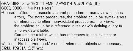 ◈ EMP_VIEW30 뷰 검색 - 뷰가 참조할 수 있는 테이블이 없는 경우 에러 발생