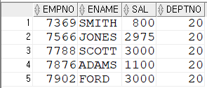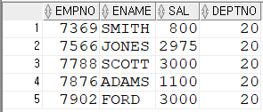 SELECT ROWNUM,EMPNO,ENAME,SAL FROM EMP_VIEW;