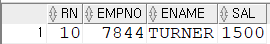📘EMP 테이블에 저장된 모든 사원의 사원번호,사원이름,급여를 급여로 내림차순 정렬하여 행번호를 제공받아 검색하고 행번호가 10인 행 검색