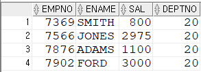 SELECT EMPNO,ENAME,SAL FROM EMP;
