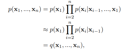 이는 markov assumption기반 approximation으로 이전 하나의 node에만 영향을 받는다는 식으로 근사를 합니다.