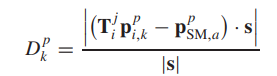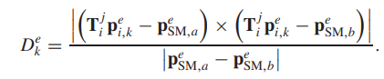 이것은 keyframe coordinate로 옮긴 feature와 sparse localmap에서 가장 가까운 두 feature을 뽑아 그 두점이 이루는 직선과 옮긴 feature point의 거리를 정의한 것입니다.