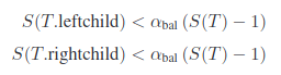 S(T)는 T point부터의 treesize입니다. 이것을 만족해야 alpha balance criterion을 만족하는 것입니다.