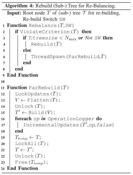 만약 sub-tree의 모든 node들의 deleted 값이 True가 된다면 treedeleted값이 True로 변경됩니다. 이렇게 설정된 lazy label들은 tree rebuilding 과정을 통해 제거되게 됩니다.