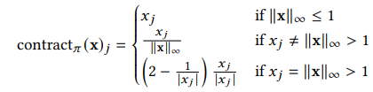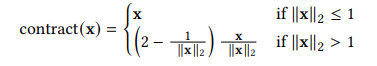 이것을 해결하기 위해 나온 것이 SNeRG라는 논문인데 이것은 3d field의 density와 color, feature를 학습합니다. 이것을 그냥 학습만 하는 것이 아니라 학습한 결과물들을 grid의 저장을 하고 그 저장된 값을 불러와 rendering을 합니다. rendering을 할 때마다 계산을 하는 것이 아니라 저장된 값을 불러오기 때문에 훨씬 시간이 빨라지지만 메모리를 많이 잡아먹는다는 단점이 있습니다. SNeRG는 unbounded된 공간을 표현하기 위해 contraction function을 사용하는데 그것은 다음과 같은 식입니다.