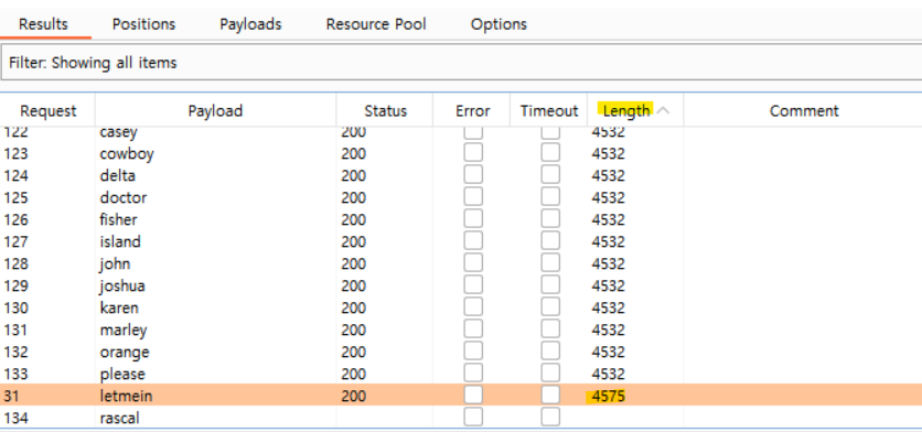 user, password의 값을 알아내기