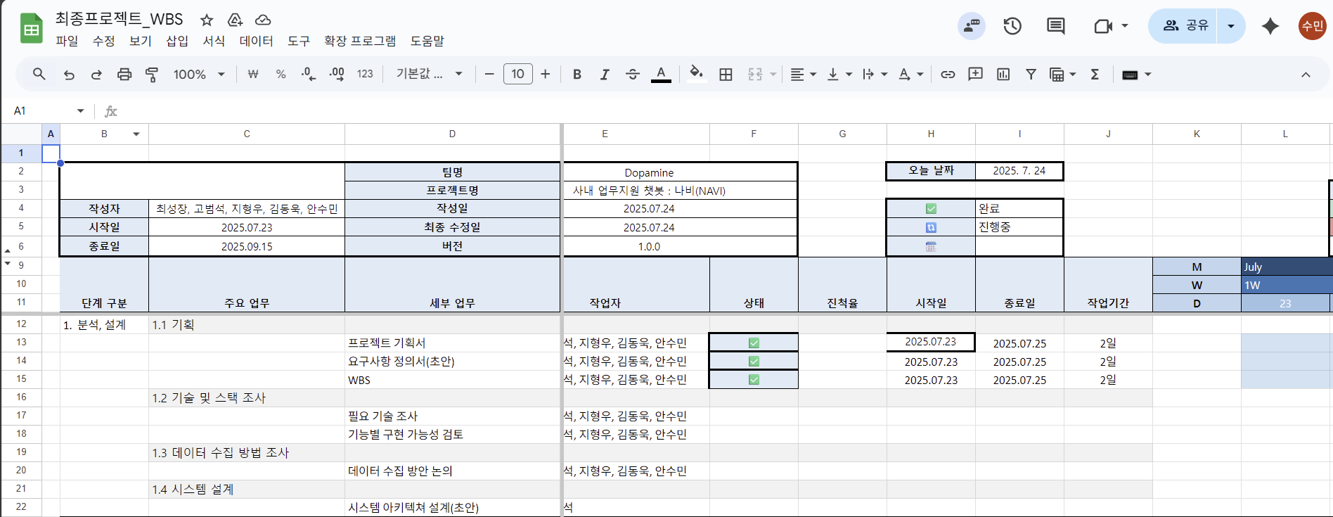 요구사항 정의서, 기획서, WBS 작성을 마무리했다.