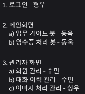 화면 설계서 제작 업무에 대해 역할 분담을 했다.