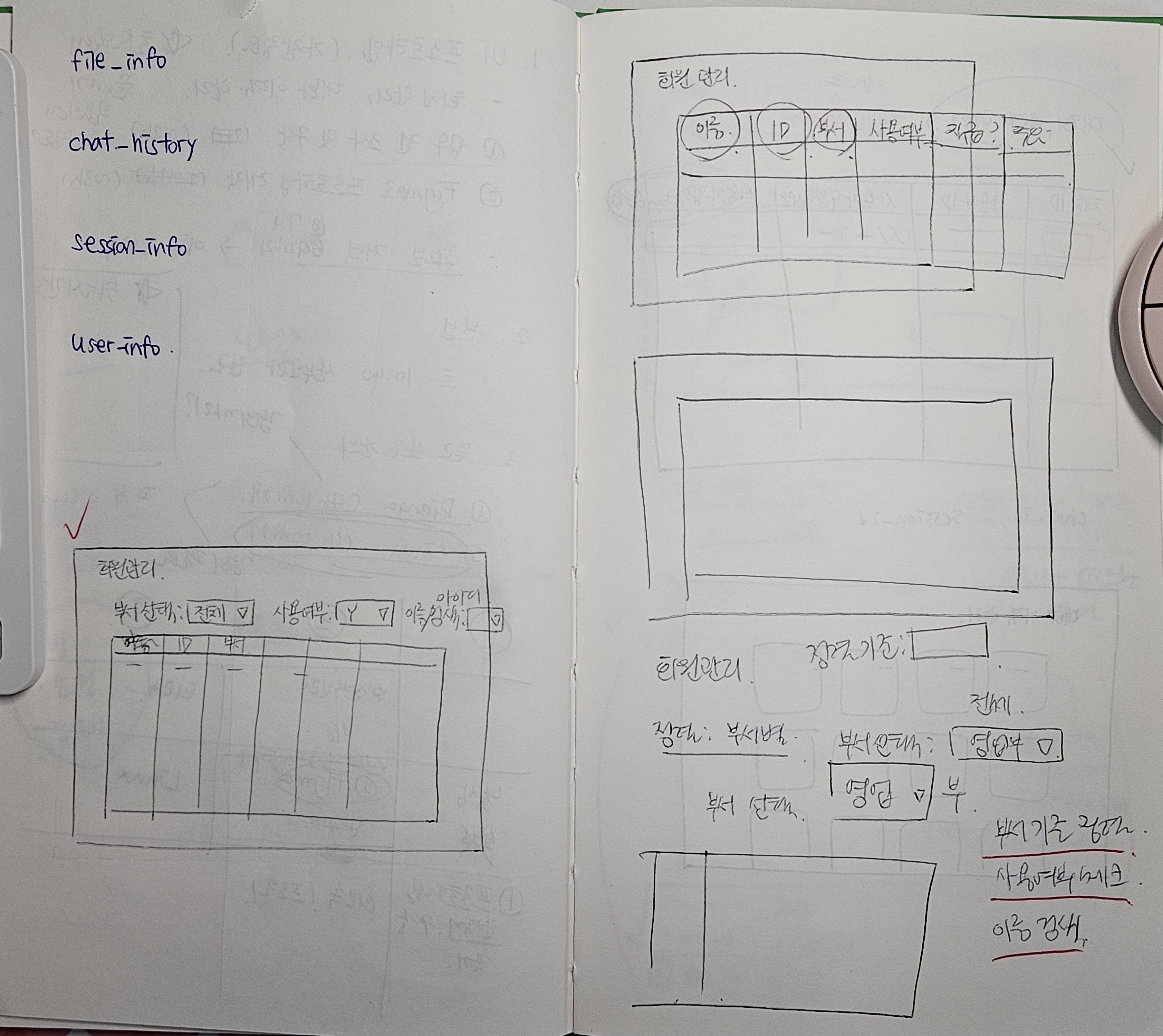 나는 관리자 페이지에 들어갈, 회원 관리 화면과 대화 이력 조회 화면을 맡았다.