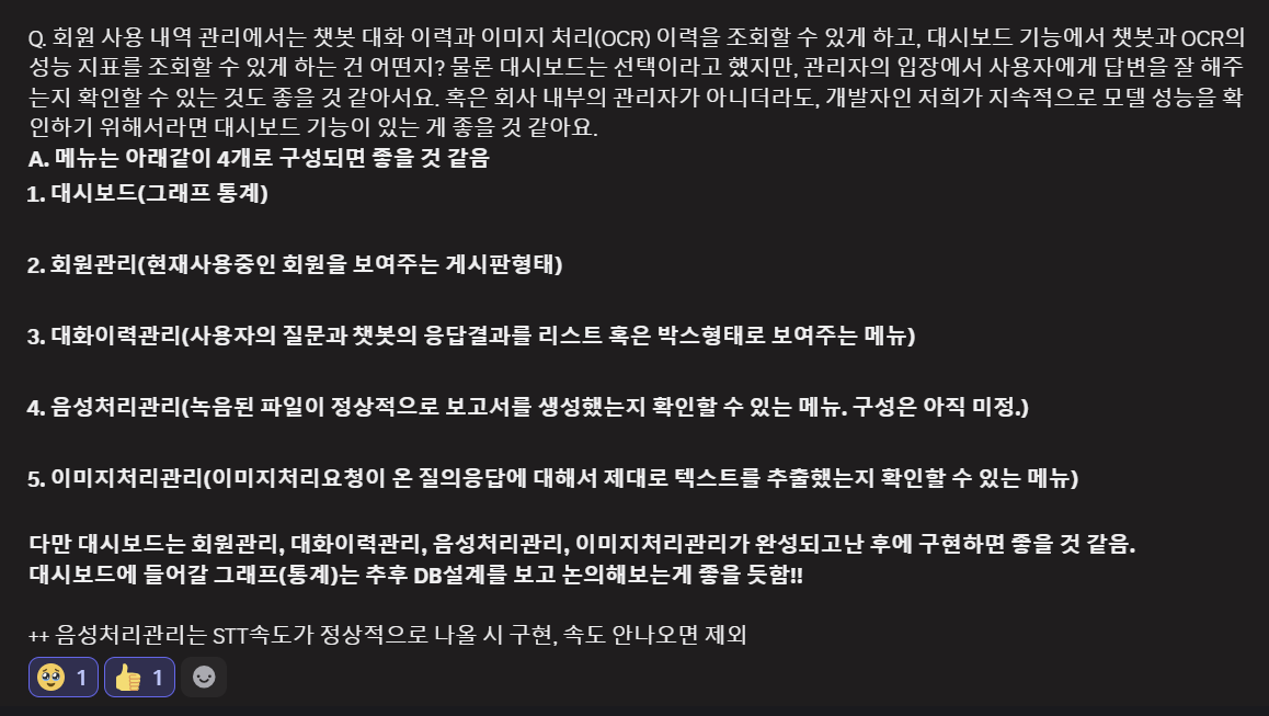 화면 구상을 하기 앞서 팀원들의 의견을 묻고 싶은 부분이 있어 질문을 여러 개 올렸는데, PM님이 너무 상세히 잘 답변해주셔서... 감동의 눈물 흘릴뻔함 진짜로..