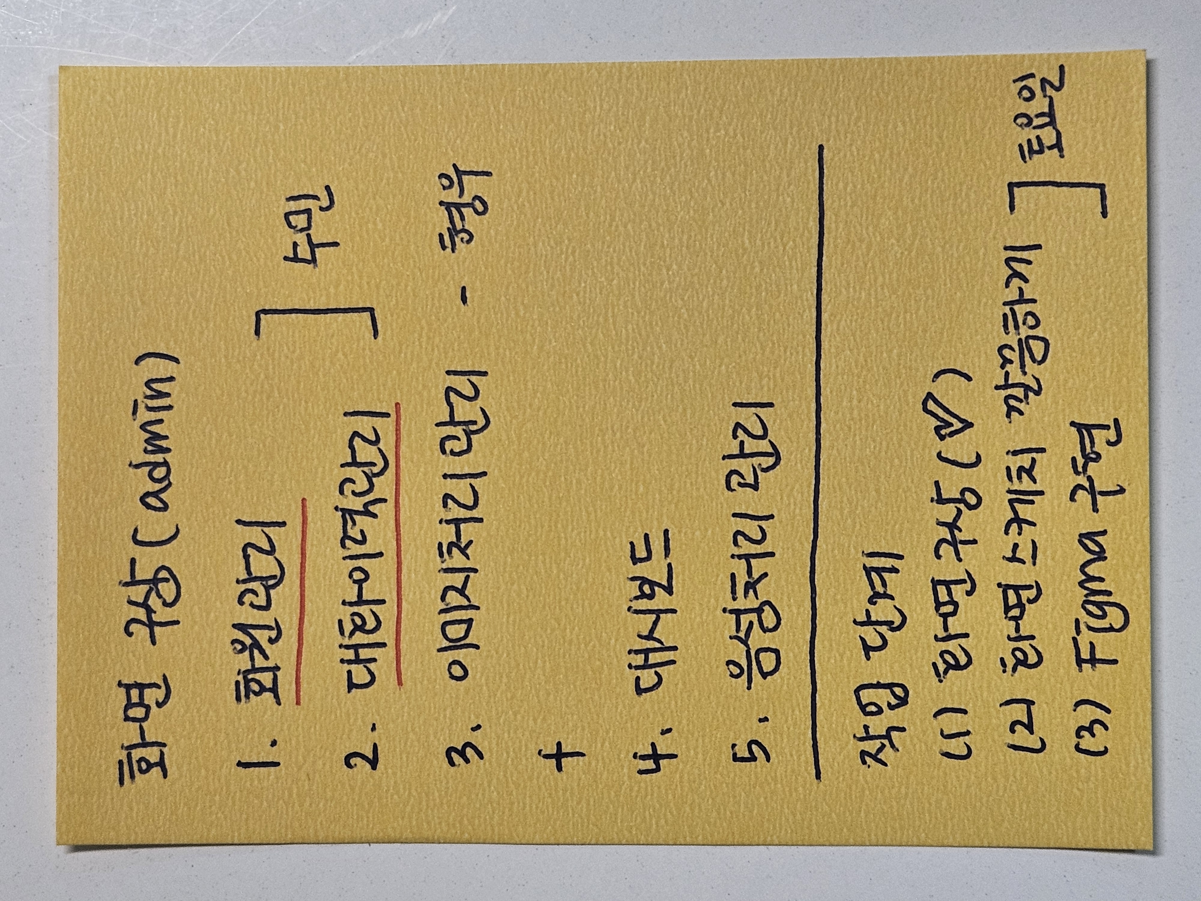 오늘(금요일)은 화면 구상까지 했고, 내일 본격적으로 화면 설계도를 구현할 계획이다.