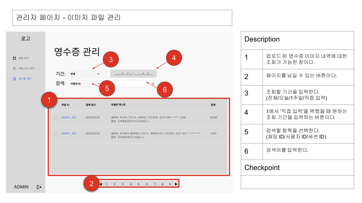 - 영수증 처리 화면: 기간 조회, 검색 기능 넣음