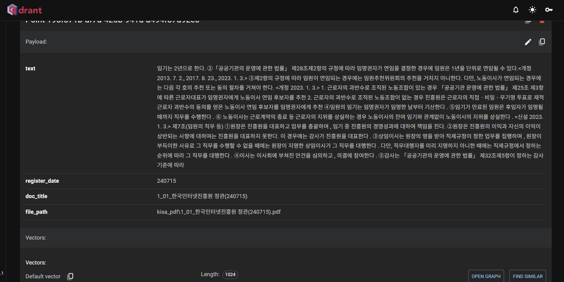 문서 하나만 임베딩해 본 결과 정상 작동했다. RAG도 정상 작동했다! 두 코드 파일을 잘 수정해 기쁘다~